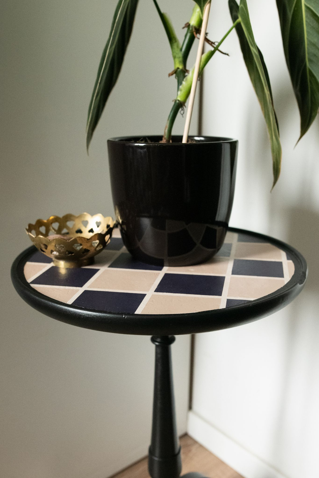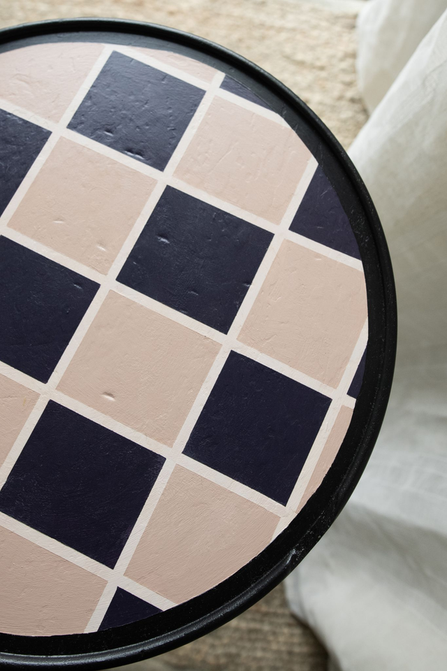 Entre damier et dorures, un guéridon qui ne passe pas inaperçu.